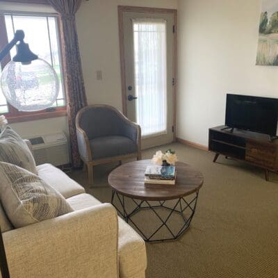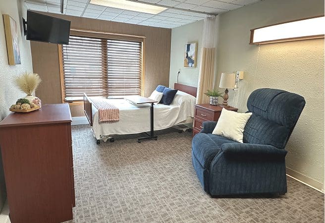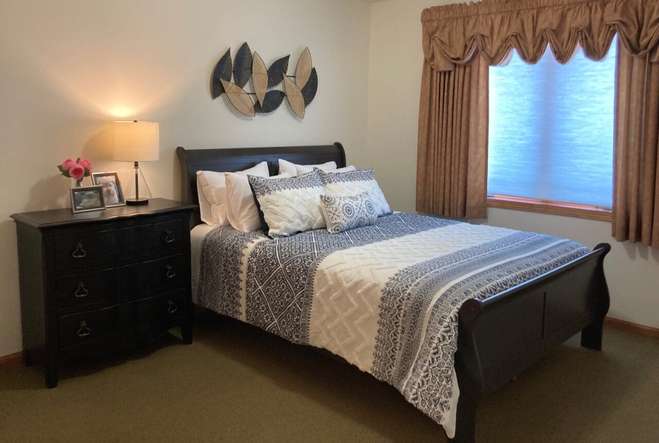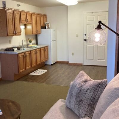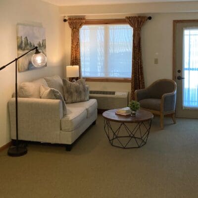 Belle Haven residents can choose from one-bedroom, den, or two-bedroom layouts with kitchens, private patios, and generous closet space. The facility features a library, walking paths, and a whirlpool spa, and connects to Rehabilitation Center of Belmond.